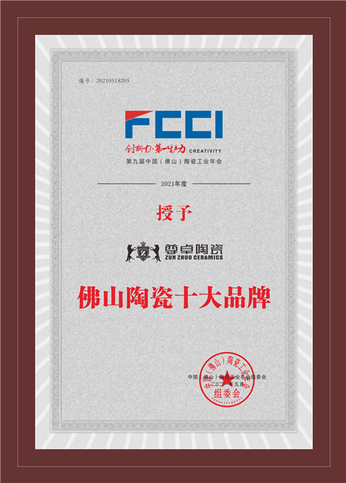 尊卓陶瓷憑借強大的品牌實力屢次得到業界和消費者的肯定,連續5年入選“佛山陶瓷十大品牌”,穩坐行業第一大隊列,為佛山陶瓷的金字招牌添彩增色,向中國傳遞“正宗佛山陶瓷”的品牌聲音。