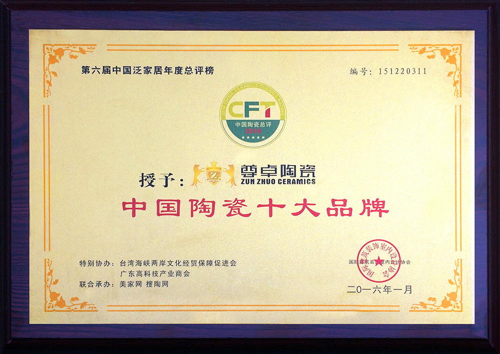 尊卓中國(guó)陶瓷十大品牌